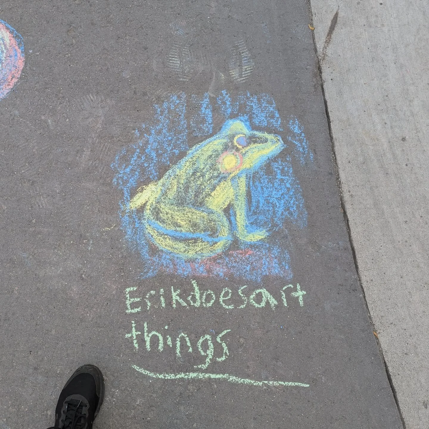 View fullsize Throwback to when I did a chalk drawing of a frog. Should I order some chalk and draw one in every city I stop In?